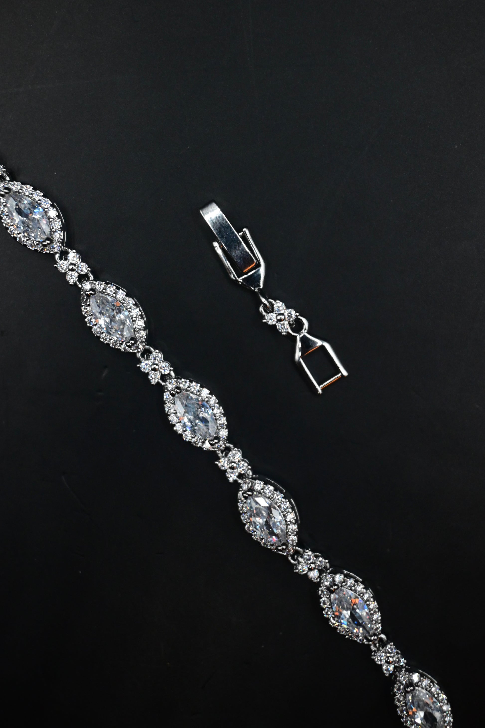 StarRain Bracelet od Iced Swag - ekskluzywna biżuteria zdobiona lśniącymi kamieniami Cyrkonii, które doskonale odbijają światło, tworząc oszałamiający blask. Każdy łuskowaty element jest precyzyjnie oszlifowany i osadzony w eleganckiej srebrnej oprawie, nadając całości luksusowy wygląd. Subtelna, a jednocześnie wyrazista, doskonale dopełnia każdą stylizację – NIGDY NIE ZAWODZI!