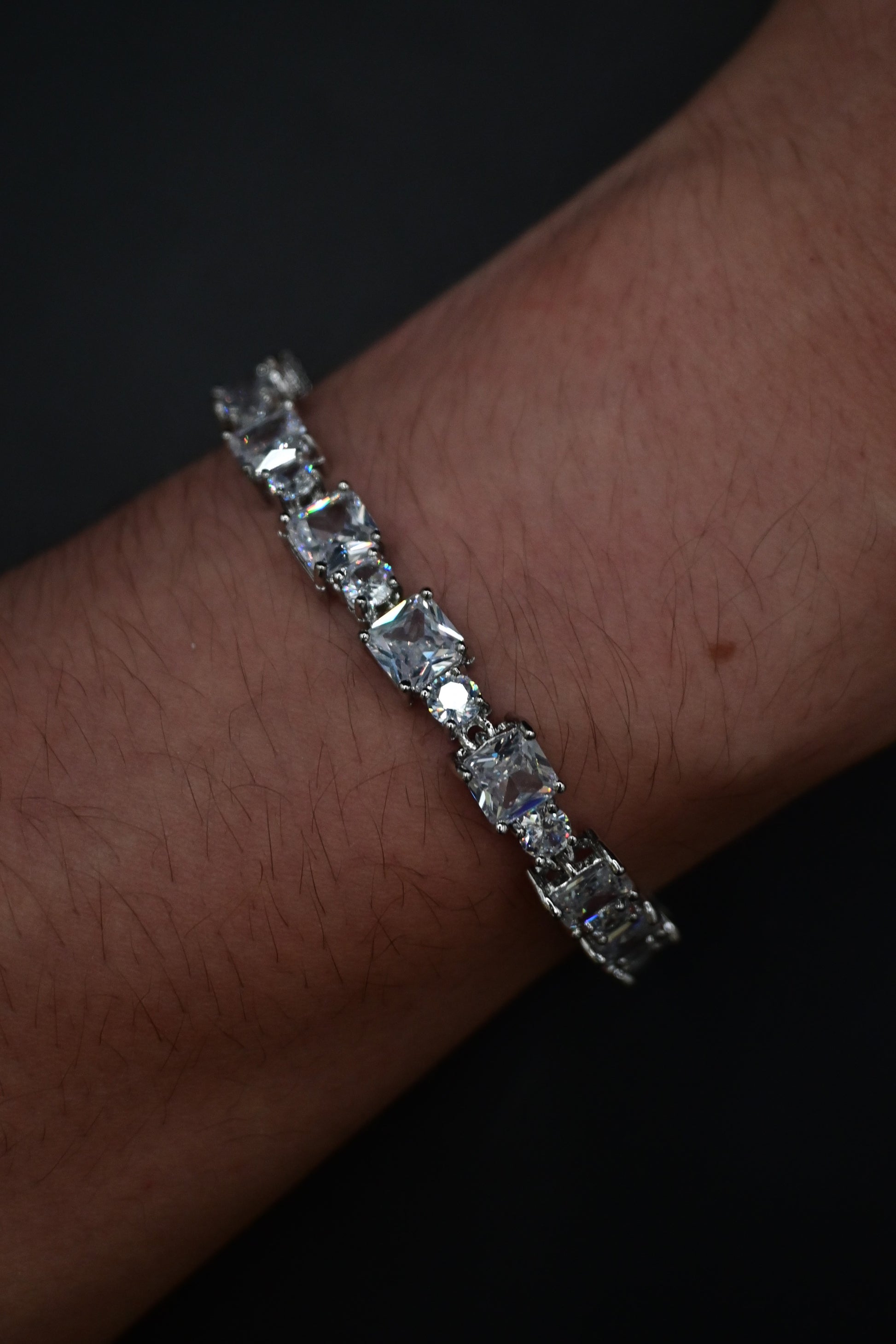 MultiStone Bracelet od Iced Swag - ekskluzywna biżuteria zdobiona lśniącymi kamieniami Cyrkonii, które doskonale odbijają światło, tworząc oszałamiający blask. Każdy kwadratowy element jest precyzyjnie oszlifowany i osadzony w eleganckiej srebrnej oprawie, nadając całości luksusowy wygląd. Subtelna, a jednocześnie wyrazista, doskonale dopełnia każdą stylizację – NIGDY NIE ZAWODZI!